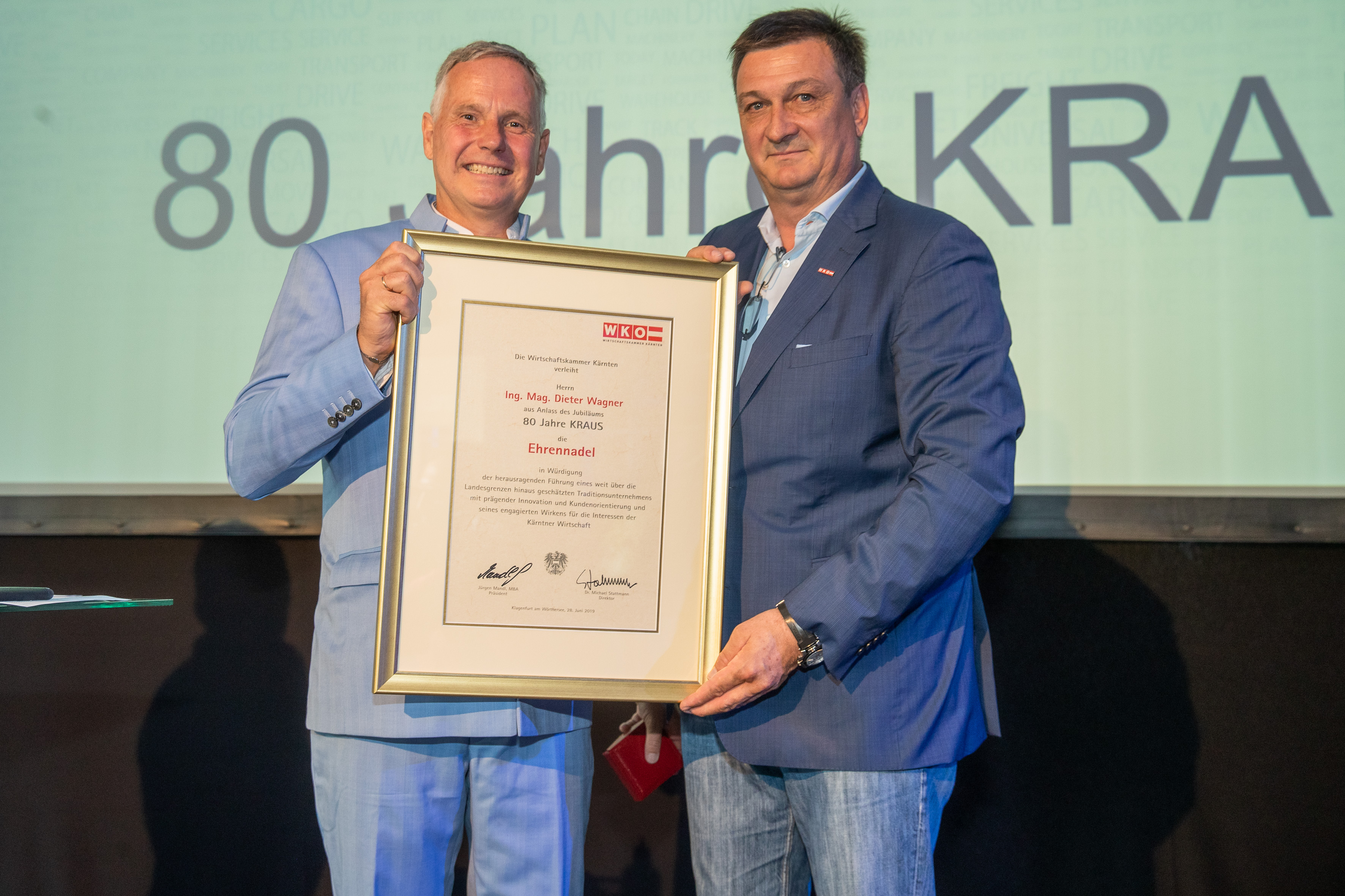 Anlässlich des 80-jährigen Jubiläums der Firma Kraus in Klagenfurt, veranstaltete der Firmeneigner Dieter Wagner & der Junior Chef Alexander Wagner am 28.Juni 2019 eine Feier auf dem Betriebsgelände. Dieter Wagner begrüßte zahlreiche geladene Gäste und Kunden, sowie die Familien und Freunde seiner Mitarbeiter.