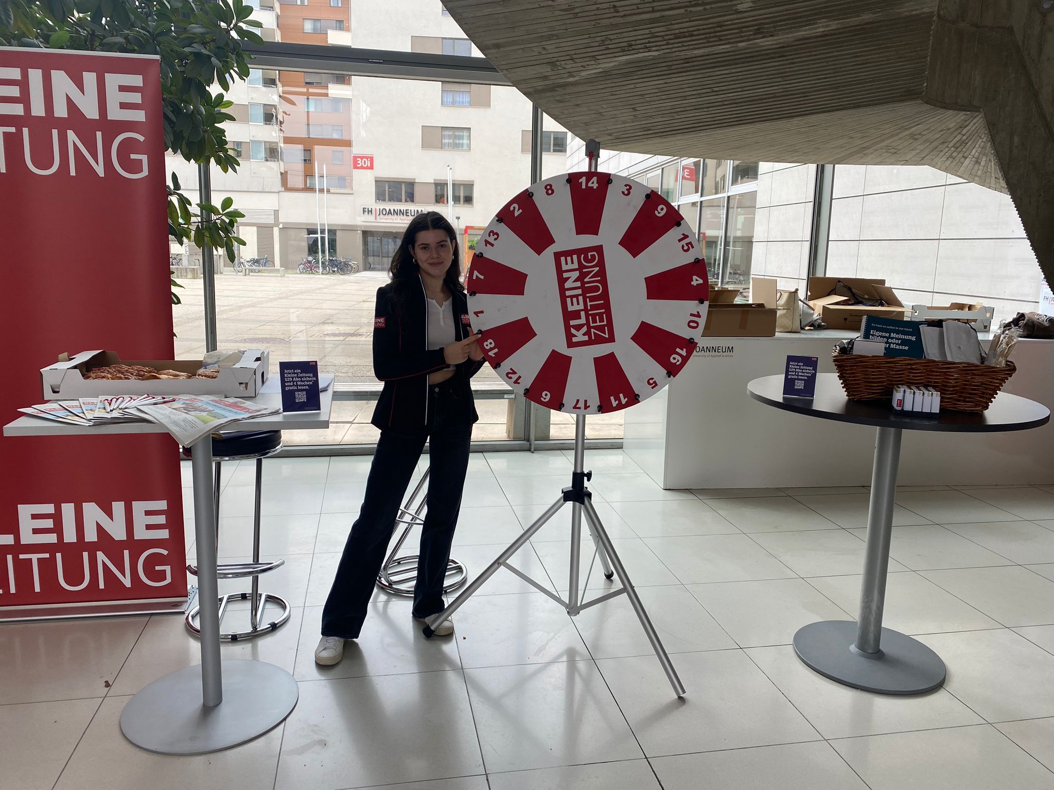 So auch zuletzt bei der Uniaktion in Klagenfurt und Graz. Unsere Hostessen betreuten dort Informationsstände des Lesermarkts der Kleinen Zeitung und machten die Student:innen mit vollem Einsatz auf das U29 Abo aufmerksam. Mit dem speziellen Angebot für Personen unter 29 Jahren soll jungen Leser:innen Qualitätsjournalismus näher gebracht und zugänglich gemacht werden.