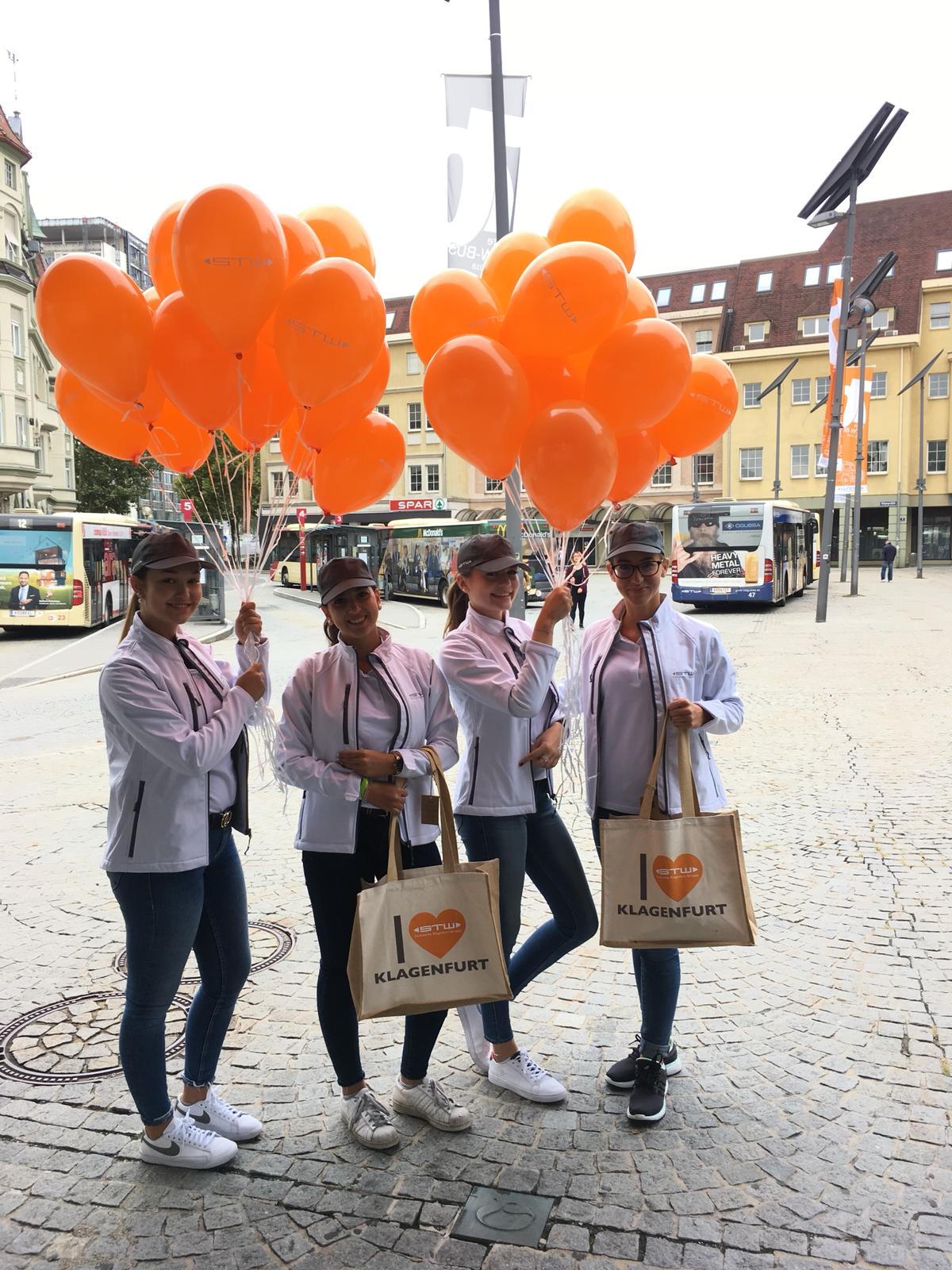 Im Zuge der Mobilitätstage & 70 Jahre STW Busse waren die Promo-Girls von UNIKAT EVENTS in Klagenfurt im Einsatz – verteilt wurden Luftballone & Muffins an die Passanten. Wir danken den Stadtwerke Klagenfurt für die jahrelange Kooperation und die unkomplizierte Abwicklung der Projekte!